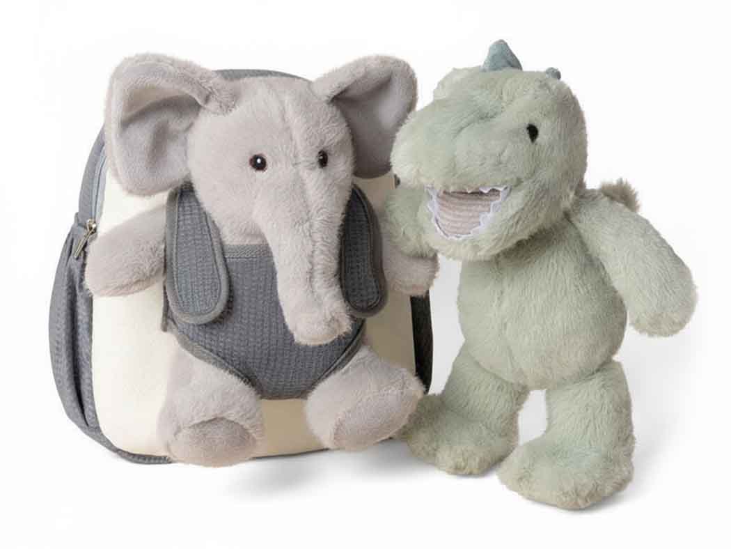 Moonkie Hug & Go™ Duo –  Elephant Backpack & Dinosaur Plush
