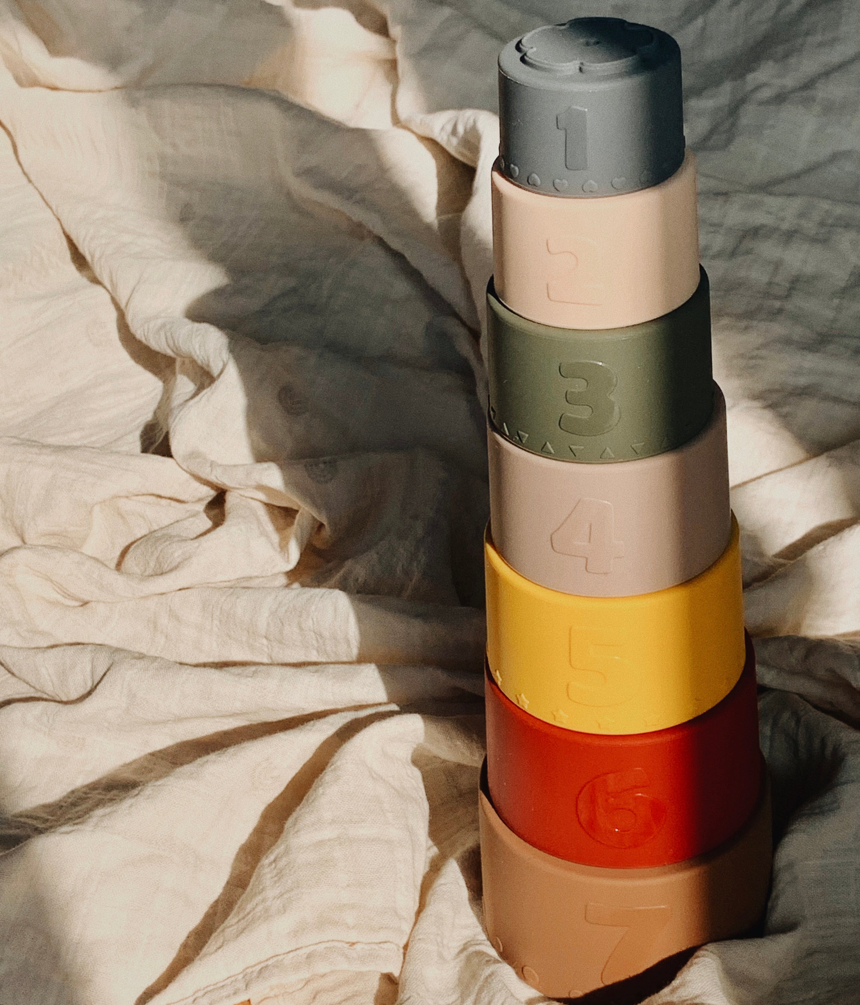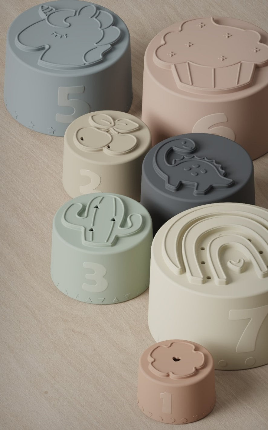 Moonkie's soft silicone stacking cups are a sensory delight for little learners. Safe for chewing and easy to clean, they promote fine motor skills, cognitive development, and sensory exploration.