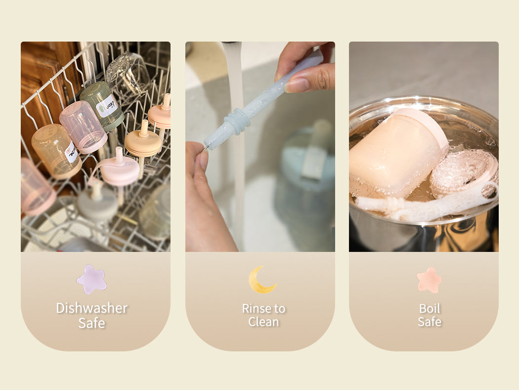 When your baby is done, toss all the pieces onto the top rack of the dishwasher. If it's been a few days or your little one really put it through the ringer, no worries! Just wash everything as usual in the dishwasher and boil on the stove for up to 5 minutes to sterilize.