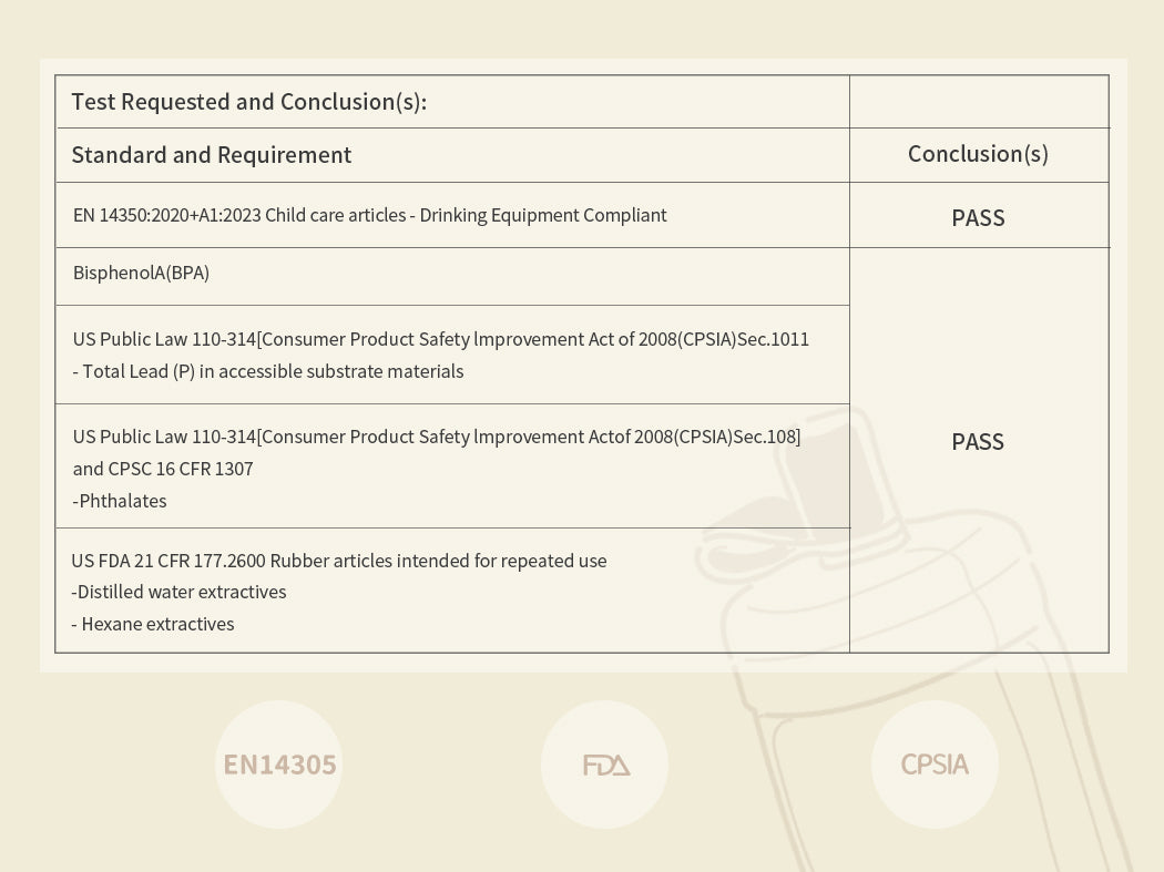 Safety comes first at Moonkie! Our training cups meet European Standard EN14350 and US FDA and CPSIA Safety Standards. We have completed rigorous health, safety, and environment checks to ensure we are going above and beyond for our little Moonkie customers around the world.
